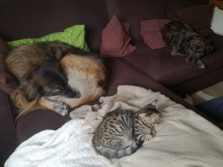 Mein Mann und ich leben mit Charly & Mila, unsere wunderbaren Hunde, sowie Matilda, unserer zauberhaft wilden Katzendame zusammen. Alle drei warten schon immer mit Wasser im Mund darauf, wenn es “Mampf“ gibt.